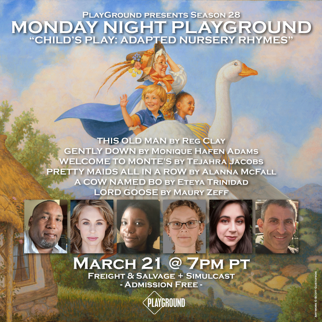 March 21st is the final SF Monday Night PlayGround of the season, and I am thrilled to announce that my piece, “Pretty Maids All in a Row” was chosen as part of it. The theme for this month was “adapted nursery rhymes”, so come see what has Mary quite so contrary.